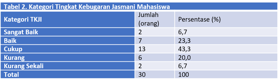 Analisis Hubungan Indeks Massa Tubuh Dengan Kebugaran Jasmani Mahasiswa Di Era Gaya Hidup Sedentari