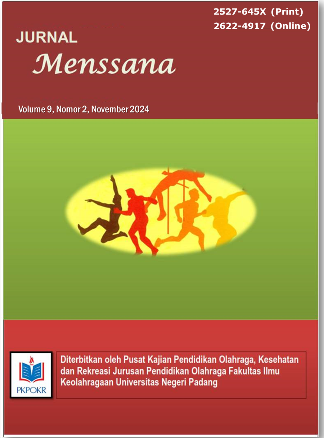Vol 10 No 2 (2025)Jurnal MensSana merupakan jurnal ilmiah hasil penelitian, berisikan Naskah tentang pendidikan olahraga untuk khalayak internasional peneliti pendidikan olahraga dan ilmu keolahragaan. Jurnal ini bertujuan untuk menyediakan forum pemahaman ilmiah tentang bidang pendidikan olahraga dan memainkan peran penting dalam mempromosikan proses akumulasi pengetahuan, nilai, dan keterampilan yang ditransmisikan dari satu generasi ke generasi lainnya; dan untuk membuat metode dan isi evaluasi penelitian dalam pendidikan olahraga.